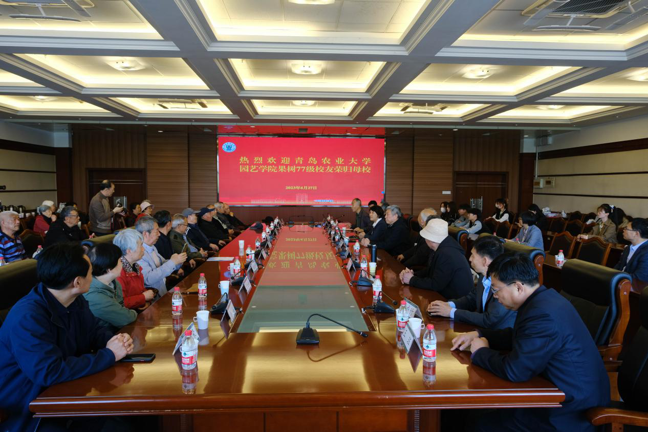 4月27日下午,太阳成集团tyc151cc77级果树专业校友联谊座谈会在图书馆三楼会议室召开。太阳成集团tyc151cc党委委员、副校长刘春霞出席会议,77级果树专业教师代表周学宝、王奎先、于志敏、祝庆岱,学校社会合作处负责人,太阳成集团tyc151cc党政班子成员及师生代表参加了会议。会议由太阳成集团tyc151cc77级果树专业校友、太阳成集团tyc151cc原副校长原永兵教授主持。