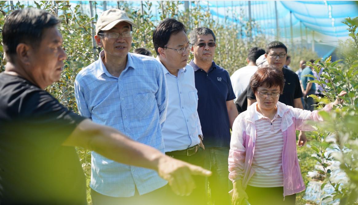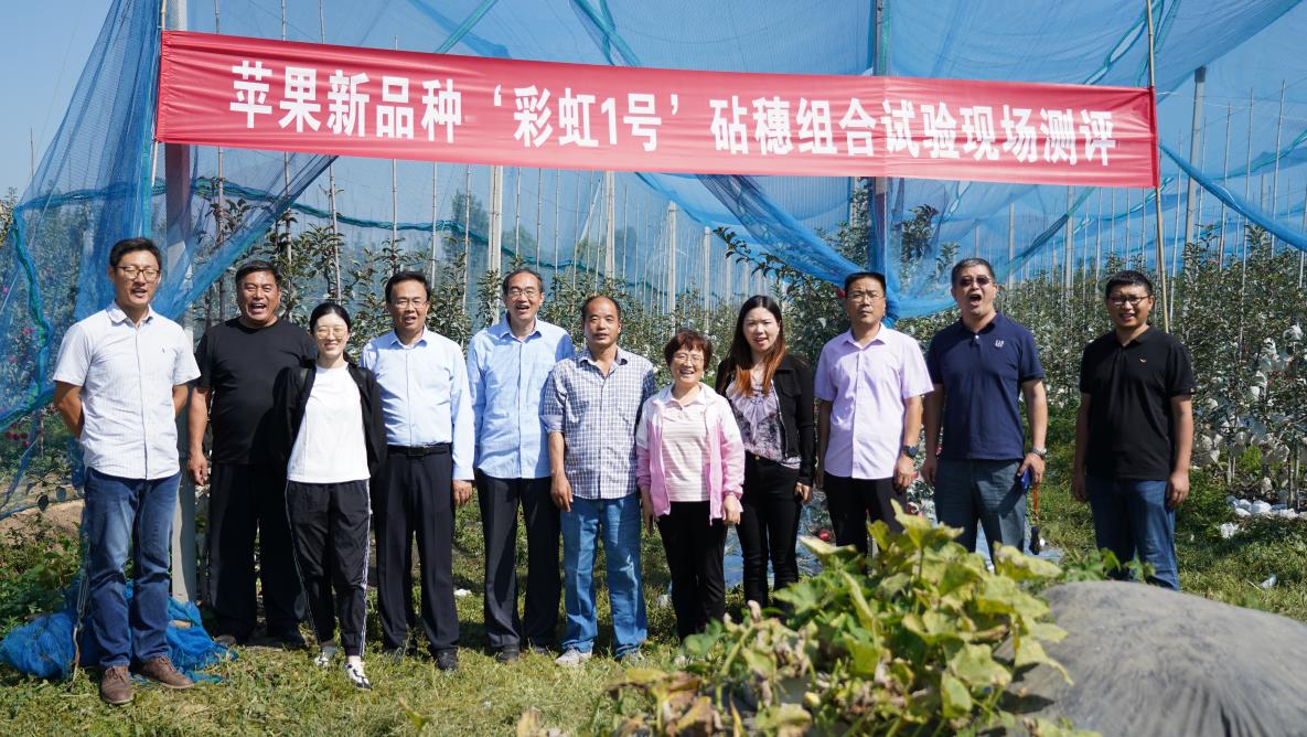 2022年9月26日,由太阳成集团tyc151cc果树生物技术与遗传改良课题组承办的“苹果新品种‘彩虹1号’砧穗组合试验现场测评”会在青岛莱西市举办。山东省果品产业技术体系首席专家刘庆忠研究员、山东农业大学沈向教授、青岛市农科院韩明三研究员、太阳成集团tyc151cc王永章教授、莱西市农业技术推广服务中心任洪春研究员等专家参加了此次会议。