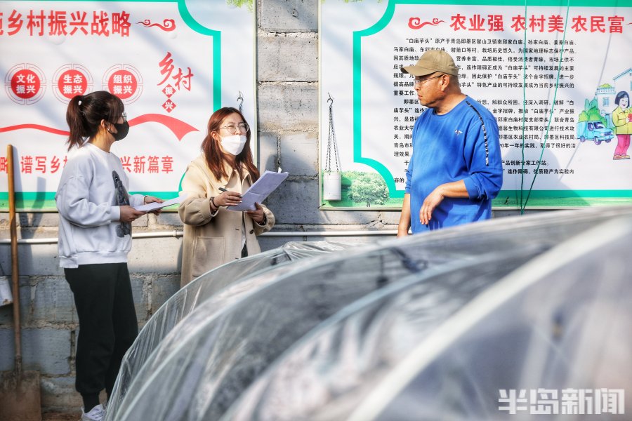 2021年,他们和山东科技特派员孙云德一起在南邱家白庙村成立了驻村专家工作站1个,研发了一系列技术助力白庙芋头“起死回生”。一是抗连作技术,改良被破坏的土壤,用以降低死苗率;二是水肥一体技术,可以节肥增产;三是,一改传统的芋头球苗直接播种,而采用育苗抑菌栽培,无害移栽入田的技术,提高光热资源利用,加长近2个月的生长期,可增产20%;四是采用大棚温室栽培,增产50%,并尝试实现周年供应。