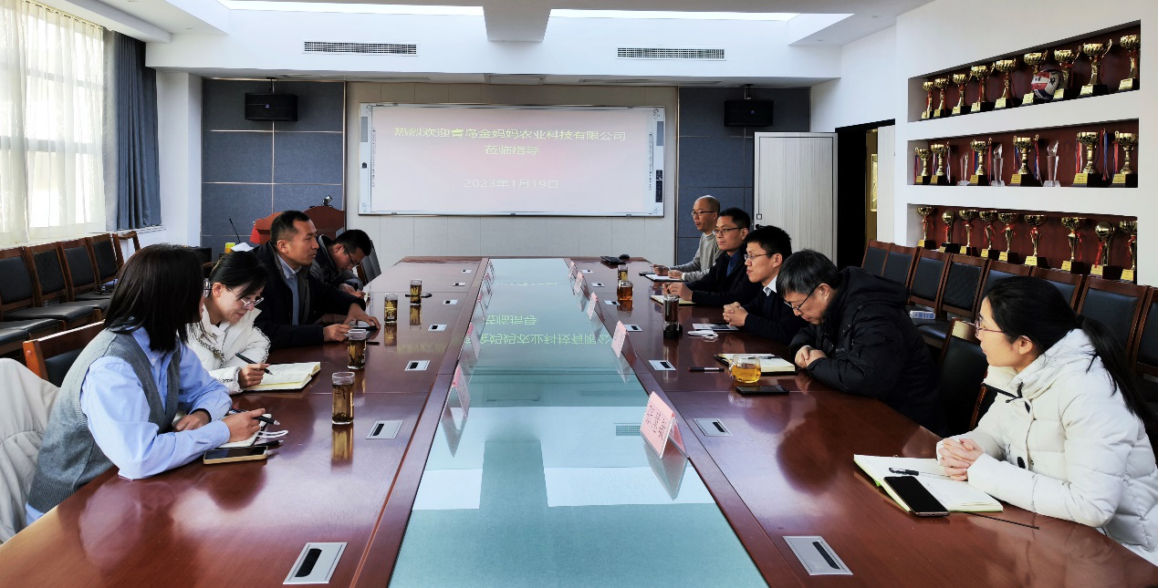 2023年1月19日,太阳成集团tyc151cc与青岛金妈妈农业科技有限公司在学院会议室开展了交流合作洽谈会议。学院张忠华院长主持会议,青岛金妈妈农业科技有限公司相关负责人、学院程斐副院长、张新富副院长、王富教授等参加了会议。