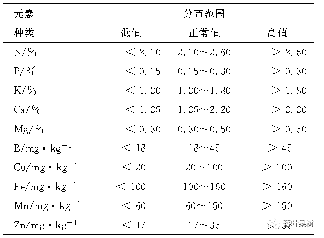 发育早期的叶分析数据可以判断苹果树体的贮藏营养水平,主要评判树体的N、P、Mg和微量元素的贮藏营养状况,尤其N素的贮藏营养状况,可以指导当年苹果的叶面施肥和生长季追肥。发育中期的叶分析数据可以评判苹果树体当年的营养水平,通过与叶营养标准值对比,可以筛选影响苹果营养状况的主要限定元素,通过调整和优化营养施肥方案,从而改善苹果树体的营养水平。(具体取样方法详见期刊全文)