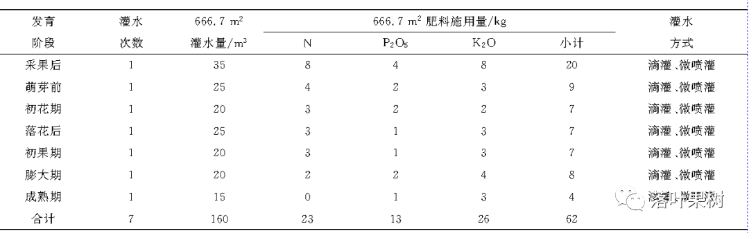 矮砧苹果生长季水肥一体化施肥方案(点击放大)